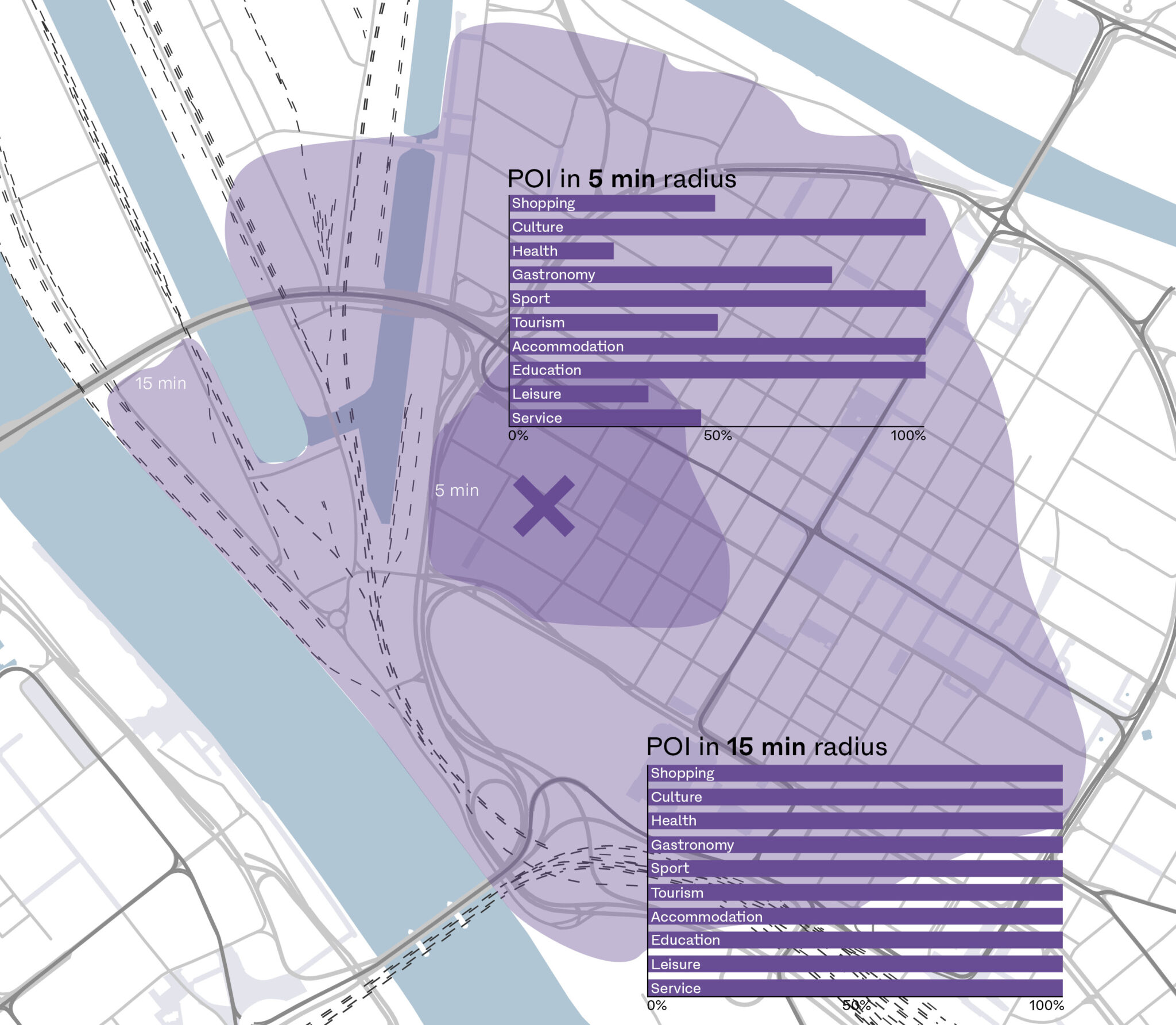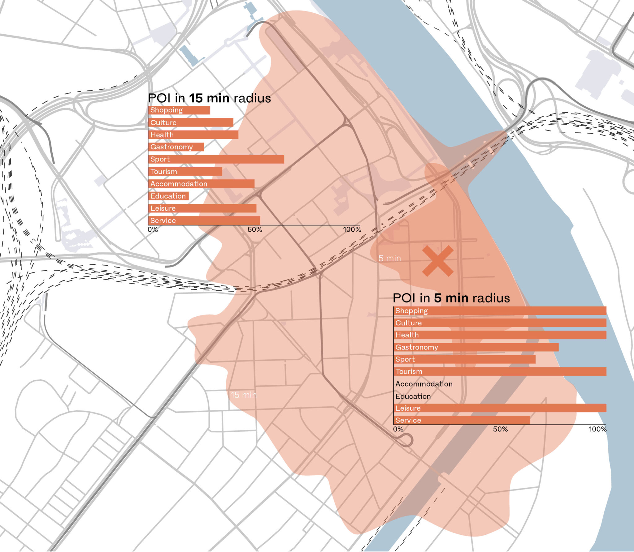A semestral project consisting of real estate market and location analysis was sure to need some neat maps. The palette of scales and types is quite wide, from administrative regional maps through plans of commuter rail and transit networks to zoomed in maps assessing transport accessibility and number of amenities in the selected locations. I even included and subsequently edited a sociological mapping methodology Sinus-Milieus aka „the potato graph“, which is in fact also a map, it just portrays social groups (and their projected development) instead of physical space.