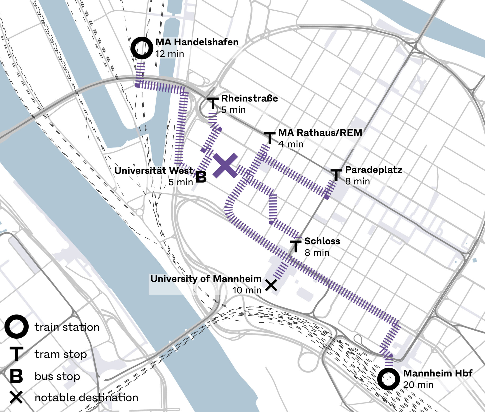 U projektu zabývajícího se analýzou trhu s kancelářskými nemovitostmi a lokalizací nového coworkingu bylo jasné, že se neobejde bez přehledných a jednoduchých map. Mapy zobrazují škálu měřítek, od administrativních map regionu přes plánky železnice a dopravních systémů až po mapy jednotlivých lokací a jejich hodnocení. Mimoto jsem převzal a upravil i sociologické mapování Sinus-Milieus, neboli bramborový graf, který je ve své podstatě taky mapou, akorát se zaměřuje na distribuci a vývoj sociálních skupin ve městě, a ne na zobrazení fyzického prostoru.
